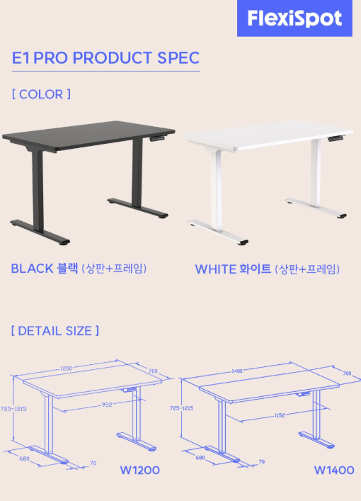 | 브랜드 | FlexiSpot 플랜티엠 PRO | 롱코 듀얼모터 모션데스크 | 아우스 모션데스크 FJ07 |