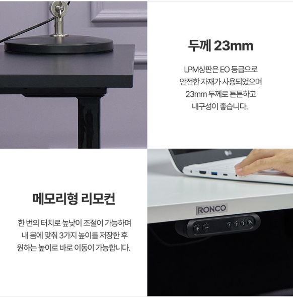 - 가성비와 넓은 작업 공간이 필요하다면 롱코 듀얼모터 모션데스크가 좋은 선택입니다.