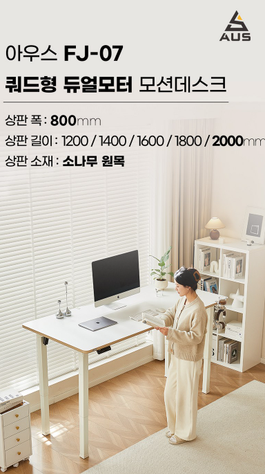 아우스 FJ07 폭800 쿼드형 듀얼모터 모션데스크 원목 스탠딩데스크 전동 모션책상 1200 1400 1600 1800 2