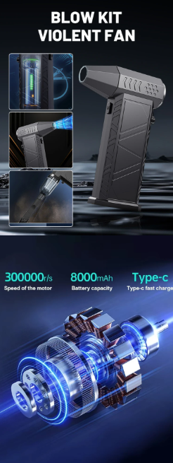 Powerful Dust Blower 800000RPM Brushless Motor Outdoor Air Duster Blower Type-C Rechargeable Air Blower Cleaning PC Turbo Fan -