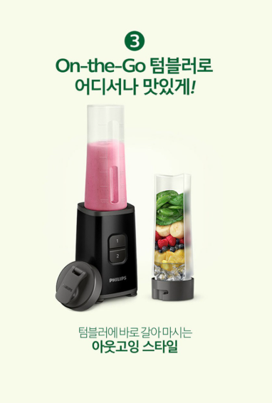 - 컴팩트한 사이즈와 다용도 활용을 원한다면 필립스 미니 블렌더를 추천합니다.