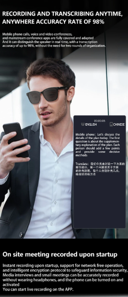Xiaomi HY-C8 Smart Glasses AI Intelligent Translation Wireless Bluetooth Glasses Real-time Simultaneous Interpretation Headset -