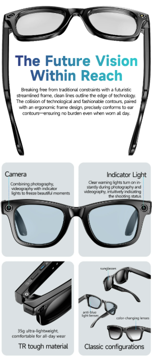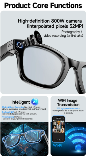 LIGE 스마트 안경은 간편한 사진 및 영상 촬영에 초점을 맞춘 제품입니다. 복잡한 기능보다는 기본적인 카메라 기능에 충실하며, 합리적인 가격으로 스마트 안경을 처음 사용해보는 분들에게 좋은 선택지가 될 수 있습니다.