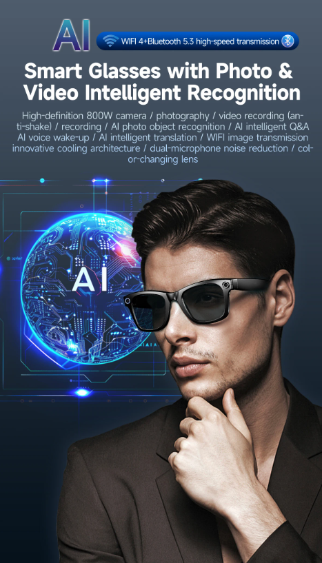 LIGE New Camera Smart Glasses with Photochromic Lenses Photography Video ChatGPT AI Interactive Translation Smart Sunglasses Men