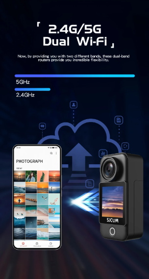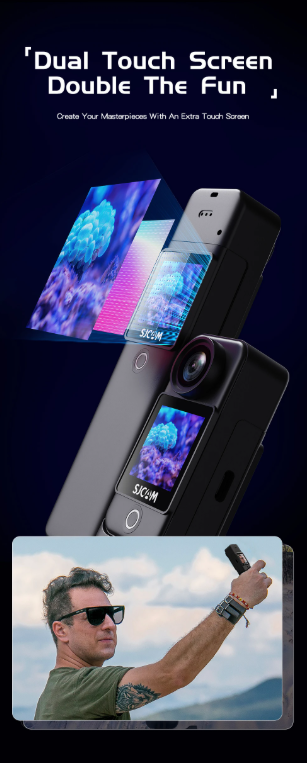 SJCAM C300은 4K 초고화질 녹화는 물론, 분리형 디자인으로 두 가지 카메라 모드를 제공하는 것이 특징입니다. 전면과 후면 카메라를 모두 활용할 수 있어 셀카나 브이로그 촬영에도 적합하며, 5G WiFi 연결로 더욱 빠르고 안정적인 파일 전송이 가능합니다.