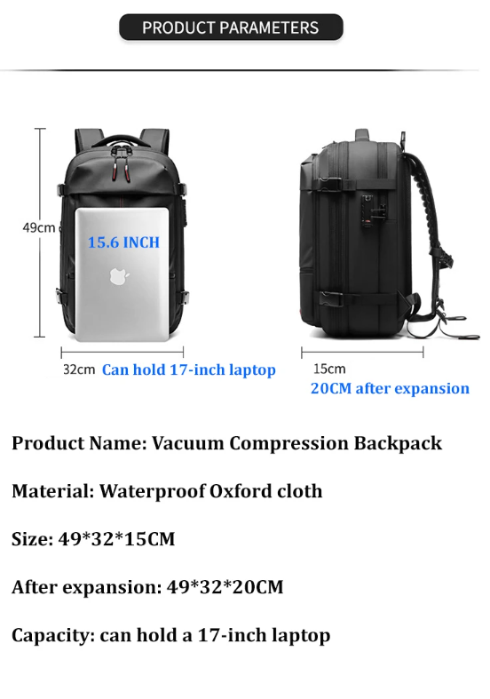 Travel Men 17 inch Laptop Backpack vacuum compression Backpack Business Large Capacity school Backpack expand outdoor backpack -