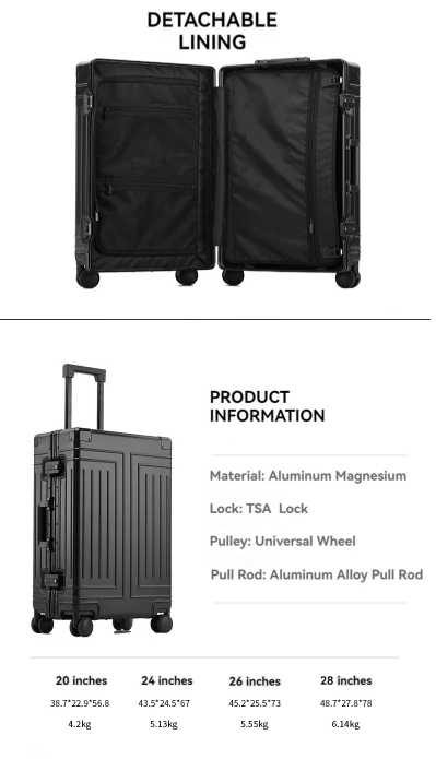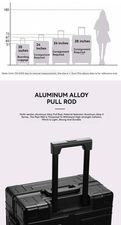 2024 Capacity Durable Luggage Sets 100% Aluminum Suitcase Wheels Women Girl Men Cabin Carry-On Boarding Travel 20/24/26/28 - Ali