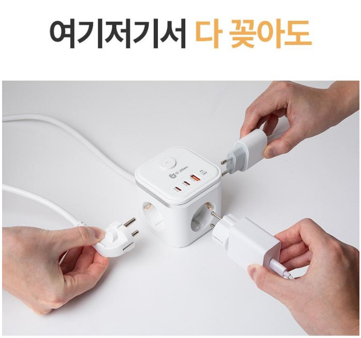 이 제품은 깔끔한 디자인과 편리한 기능으로 많은 분들이 찾는 제품이에요. 특히 USB 포트가 내장되어 있어 스마트폰, 태블릿 등을 충전할 때 별도의 어댑터가 필요 없다는 점이 가장 큰 장점입니다. 큐브 형태라 책상 위 공간을 효율적으로 활용할 수 있고, 지저분한 전선들을 한곳에 모아주는 효과도 있습니다.
