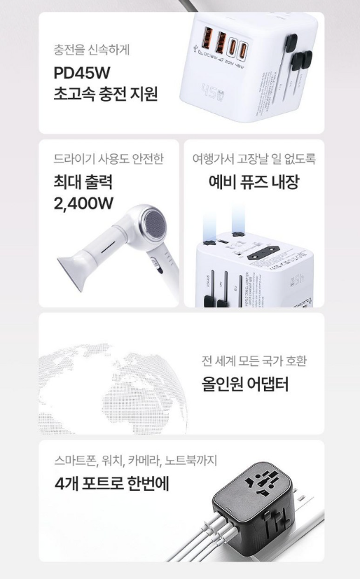 - 추천 대상: 해외여행/출장이 잦은 분, 여러 국가의 플러그가 필요한 분
