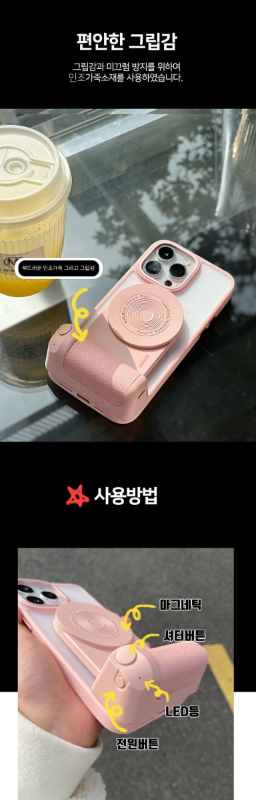 | 그립 방식 | 손으로 쥐는 일반적인 핸드그립 | 카메라 바디 형태의 그립 | 맥세이프 부착형 |