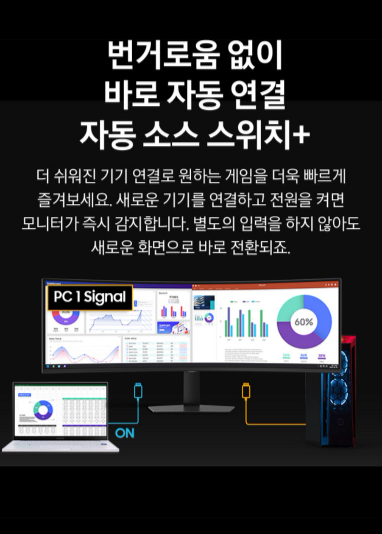 VA 패널을 사용하지만 144Hz 주사율과 1ms 응답 속도를 확보하여 기본적인 게이밍 성능은 충실합니다. 무엇보다 A/S와 브랜드 신뢰도가 높고, 이미 수많은 유저에게 검증된 49인치 울트라와이드의 기준점이라고 할 수 있습니다.