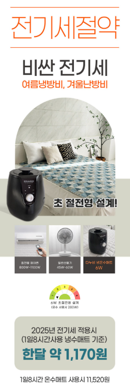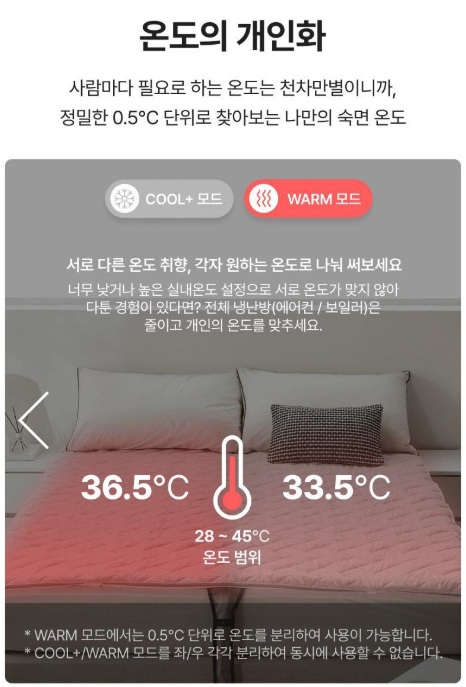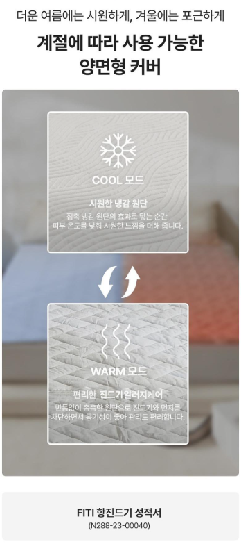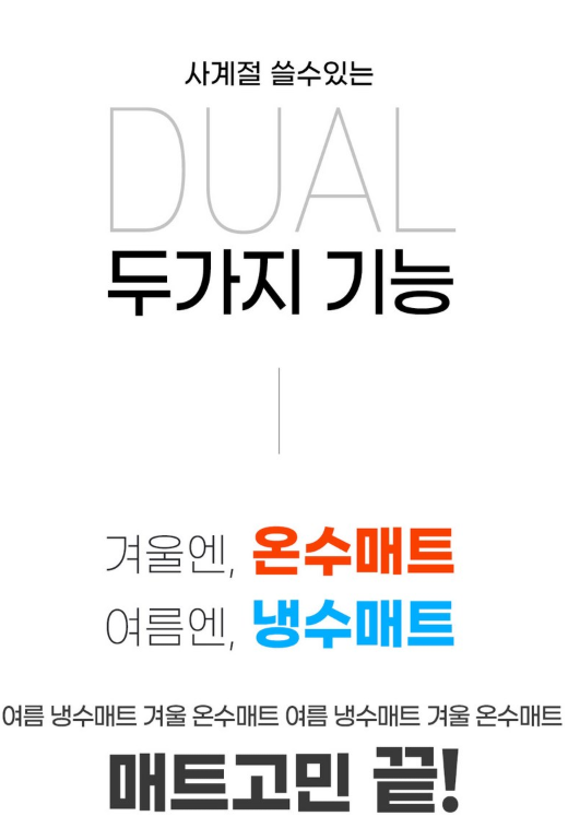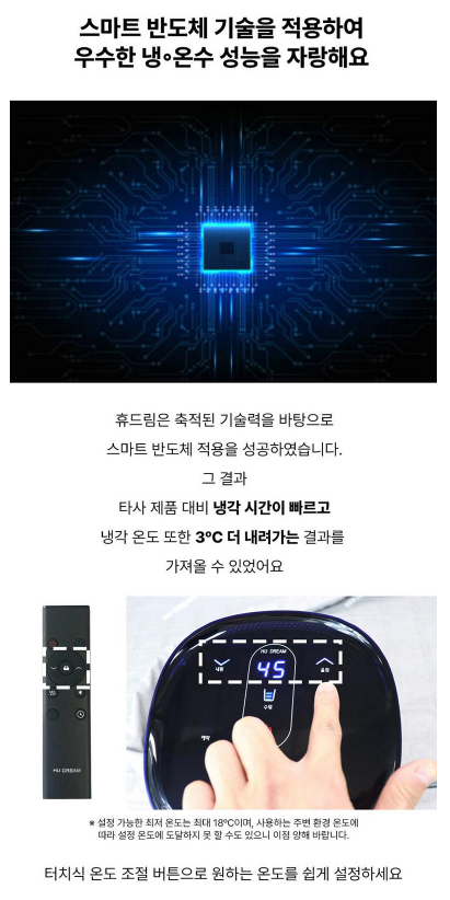 | 겨울 온수매트 여름 냉수매트 냉온수매트 | 온수 기능과 냉수 기능을 하나의 본체에서 구현 | 펠티어 소자 (반도체) 냉각 방식 |