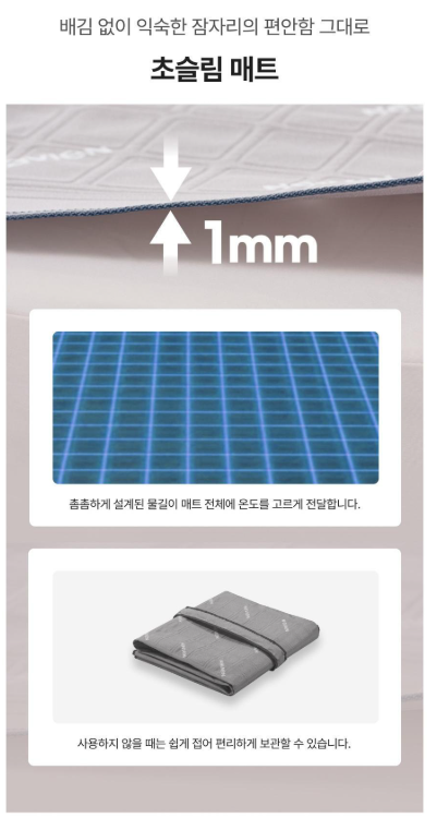 | 구분 | 휴드림 25년형 물빼기 개선 | 나비엔 AIR 슬림 EMW751 | 일반 냉온수매트 |