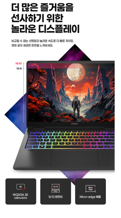 - 깔끔하고 세련된 디자인: 게이밍 노트북 같지 않은 외관.