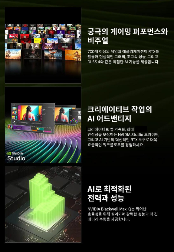 | 저장공간(SSD) | 1TB 또는 2TB PCIe Gen4/Gen5 | 1TB 또는 2TB PCIe Gen4/Gen5 | 1TB 또는 2TB PCIe Gen4 |