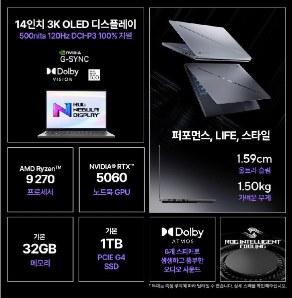 - ASUS ROG Zephyrus G14 (라이젠9 / 지포스 RTX 5060)