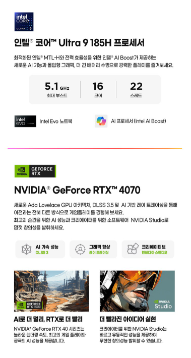 - 인텔 코어 Ultra AI 프로세서: AI 성능 및 효율성 강점.
